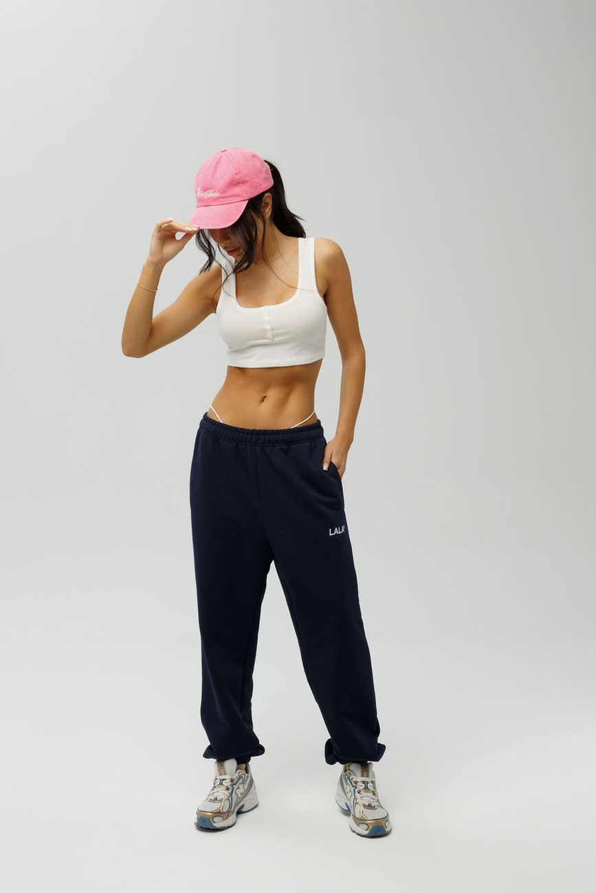 Dwie kieszenie wszyte po bokach i haft z logo LALA® na lewej nogawce. Z tyłu naszyta metka.