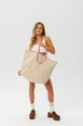 Kolorystyka beżowa z dodanymi kontrastowymi paskami w kolorze różowym rozświetli Twój dzień od samego rana