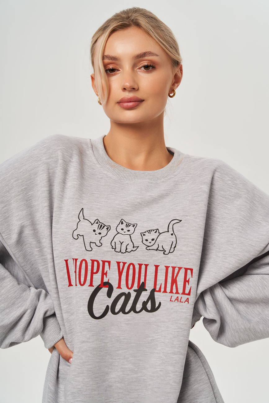 Bluza Lala I Hope You Like Cats Oversweat Szara