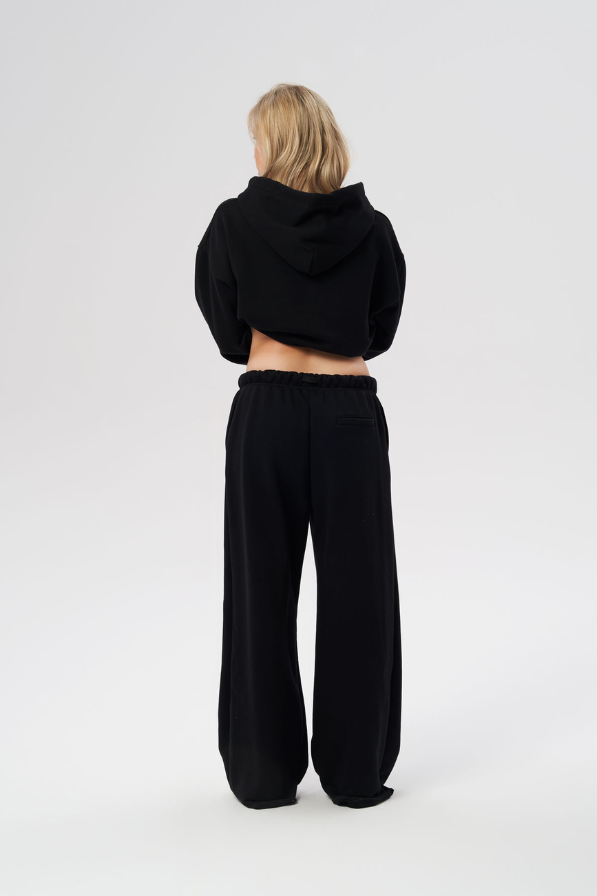 Bluza idealnie pasuje do szerokich spodni, które zostały uszyte aby stanowić razem z nią piękny zestaw.