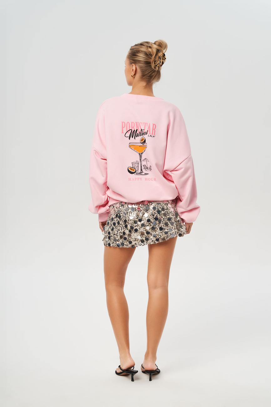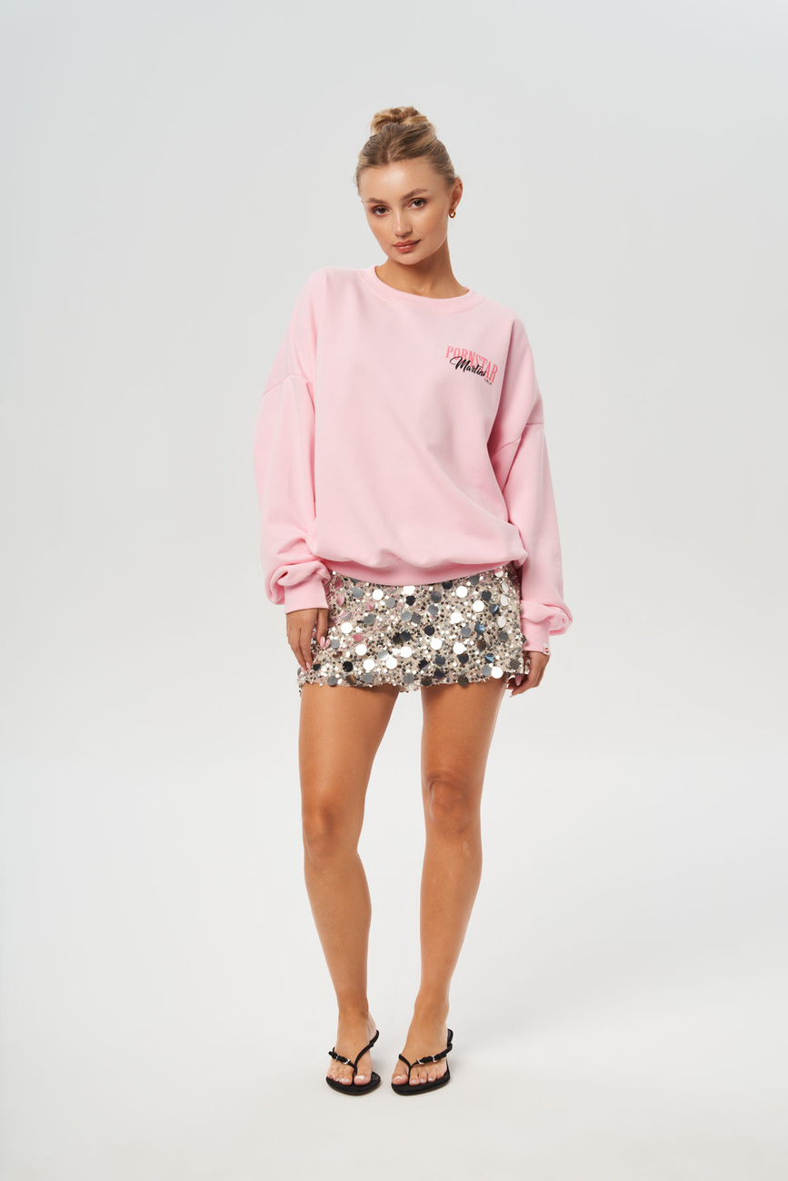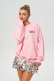 Luźna bluza dresowa z szerokimi rękawami w kolorze różowym.