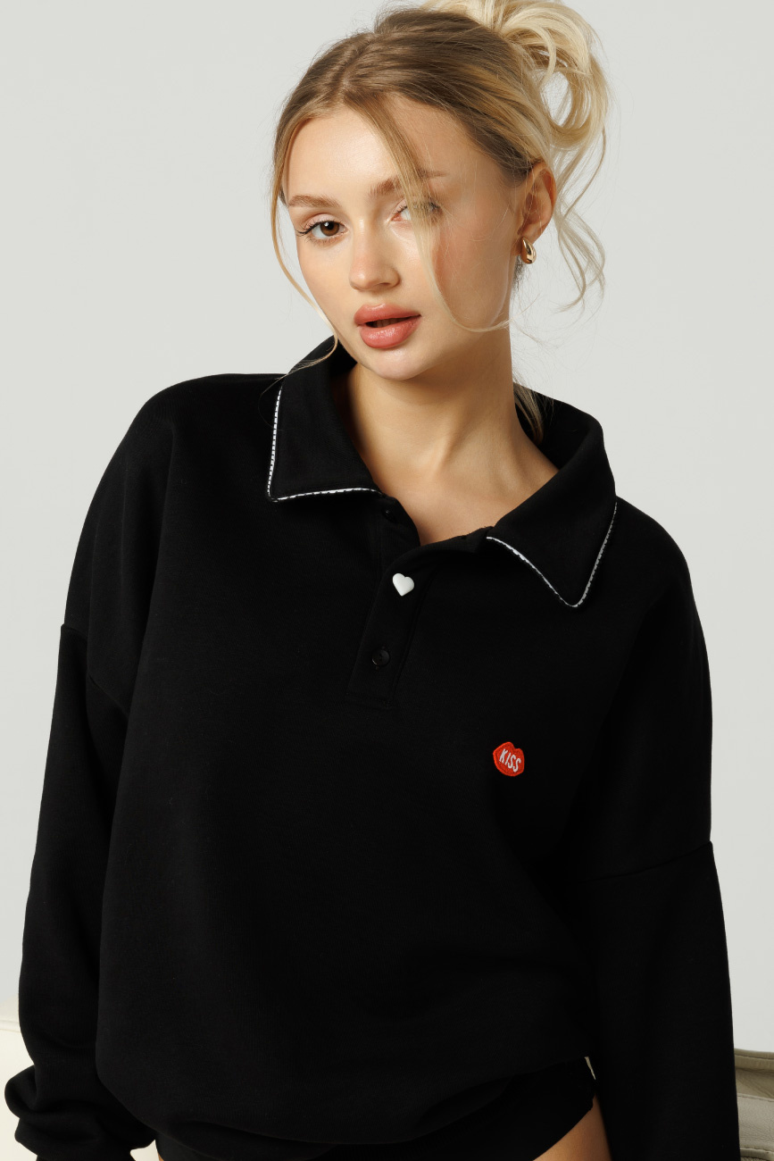 [preorder] LALA ARCHIVES BLUZA POLO Z KOŁNIERZYKIEM KISS Czarna