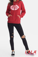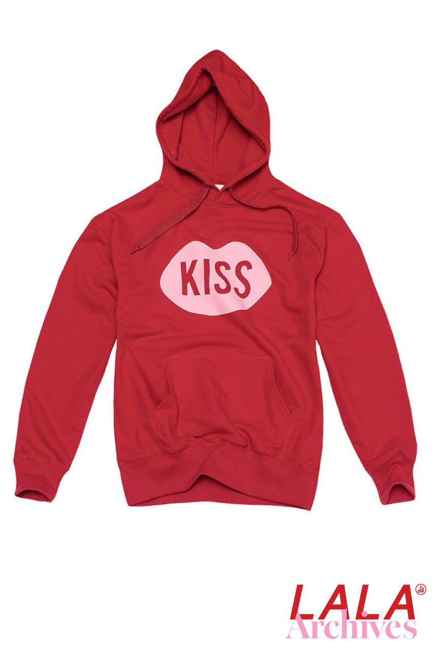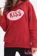 Czerwona bluza dresowa o kroju goodie. Z przodu ma duży nadruk KISS™ w kolorze różowym.