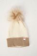 Czapka Lala Lips Beżowa z Pomponem z Wełny Merino 100%