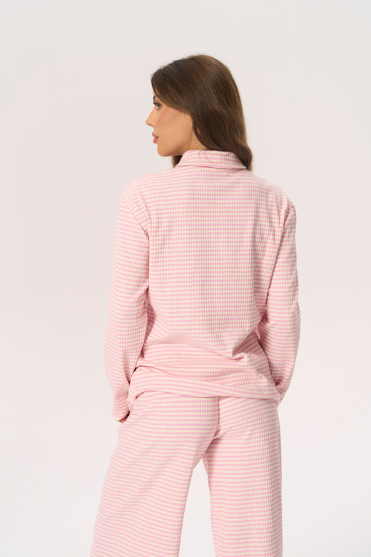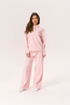 Luźne spodnie KISS Journal to definicja domowego komfortu w wersji, która wygląda dobrze bez względu na porę dnia. Uszyte z tej samej miękkiej bawełnianej dzianiny w drobne różowe paseczki, idealnie wpisują się w rytm slow mornings i długich wieczorów w domu.